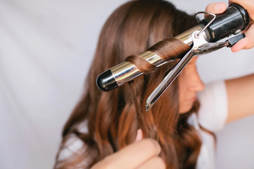 Быстро накрути пряди на крупную плойку (32 мм), держа 5–7 секунд.