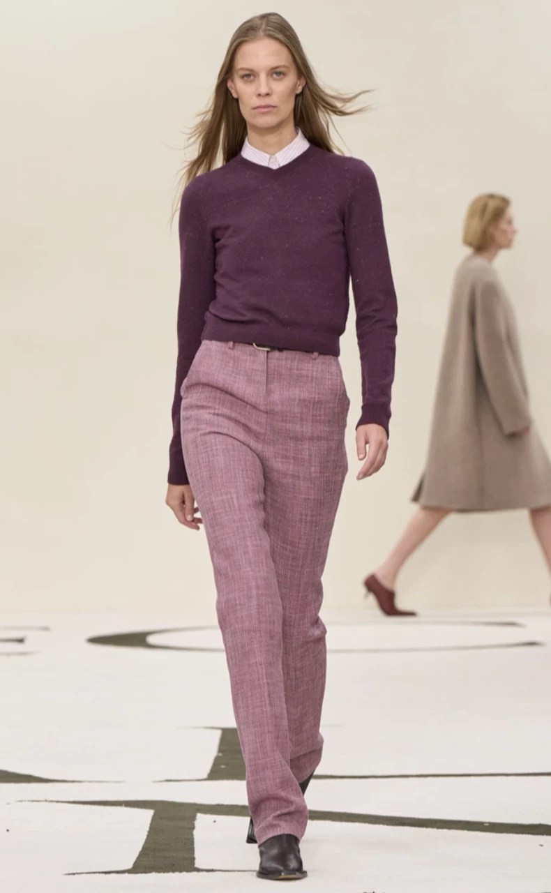 Вдохновившись модным лайфхаком героини Хелли Риггс из сериала «Разделение», Calvin Klein Collection предлагает цветовую формулу: два близких оттенка (розовый и сиреневый) + третий, контрастный (коричневый). Эта формула работает безотказно, особенно в офисных луках: строгие, но нестандартные образы — новый деловой дресс-код.