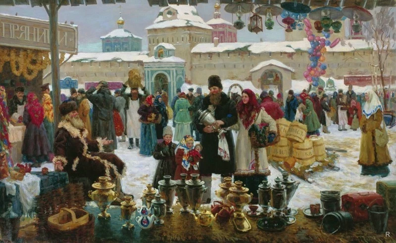 Замужние женщины, в свою очередь, занимались рукоделием не для себя, а для последующей продажи. Изготовленные изделия, такие как одежда, украшения и сани, часто продавались на ярмарках, которые в этот период открывались в городах. Ярмарки становились центром торговли самодельными товарами, особенно востребованными в зимнее время. Продажа таких предметов была важным событием, способствовавшим не только обеспечению семейного благополучия, но и сохранению древних традиций.